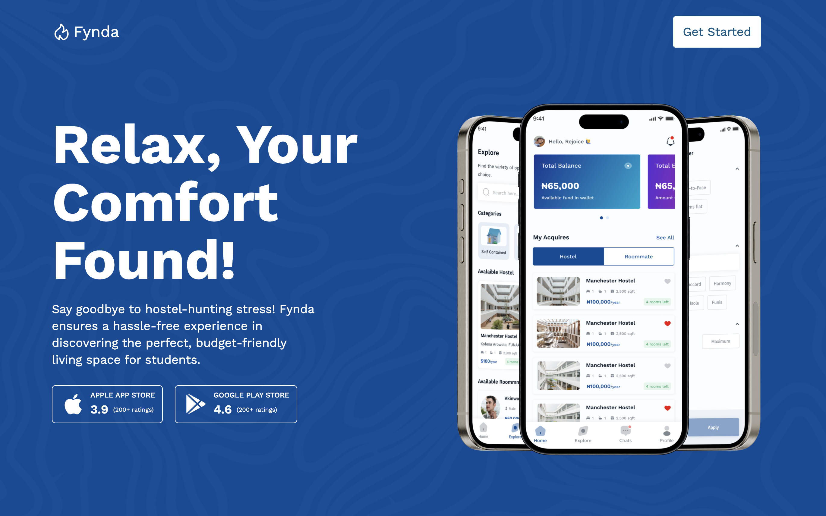 Fynda is a mobile application that ensures a hassle-free experience in discovering the perfect, budget-friendly hostels, make payment, connect with students and chat with the agents and landlords
