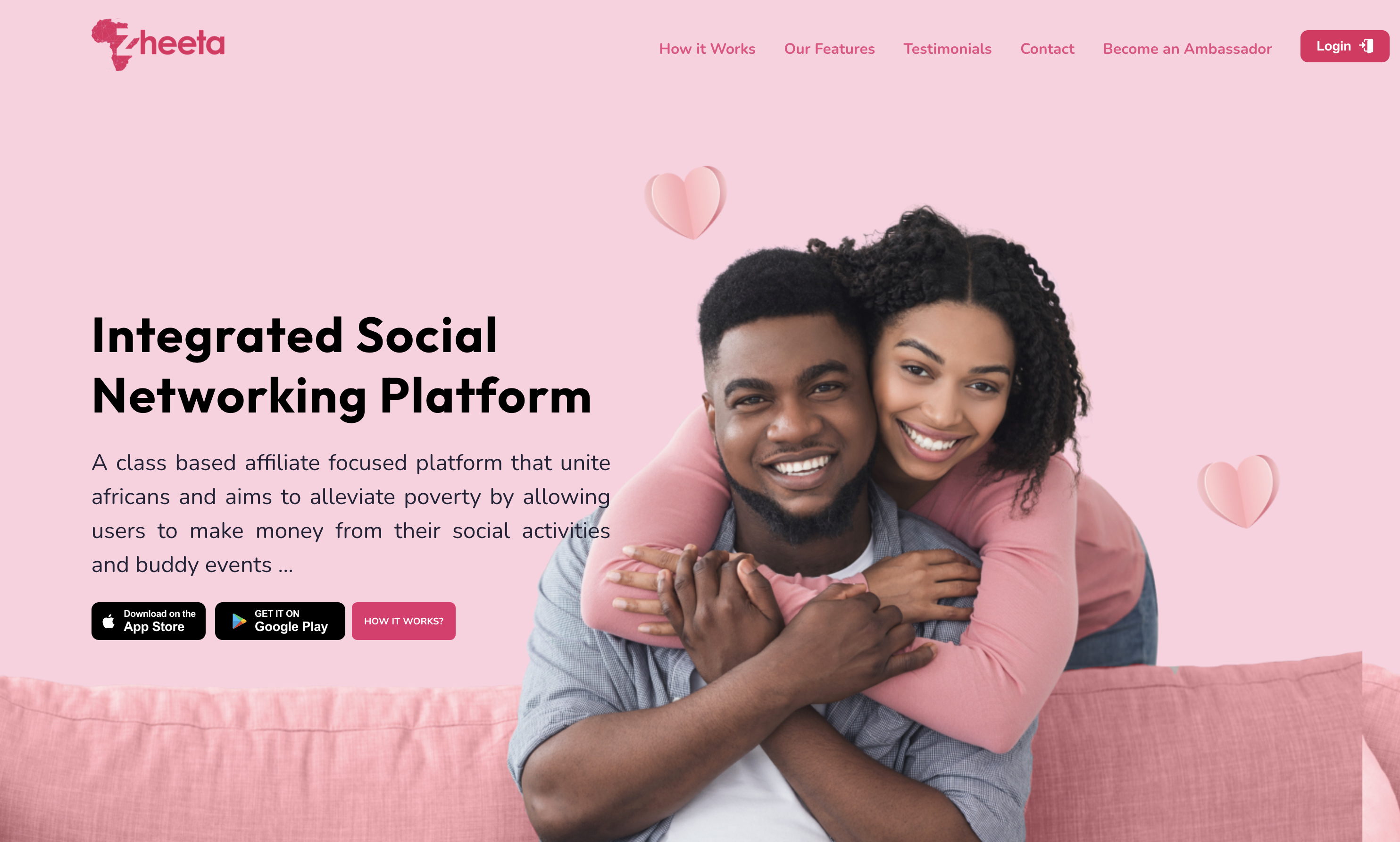 Zheeta is an affiliate-oriented social networking platform designed to connect and empower users—especially Africans—through photo/video sharing, social interactions, events, and monetisation opportunities.