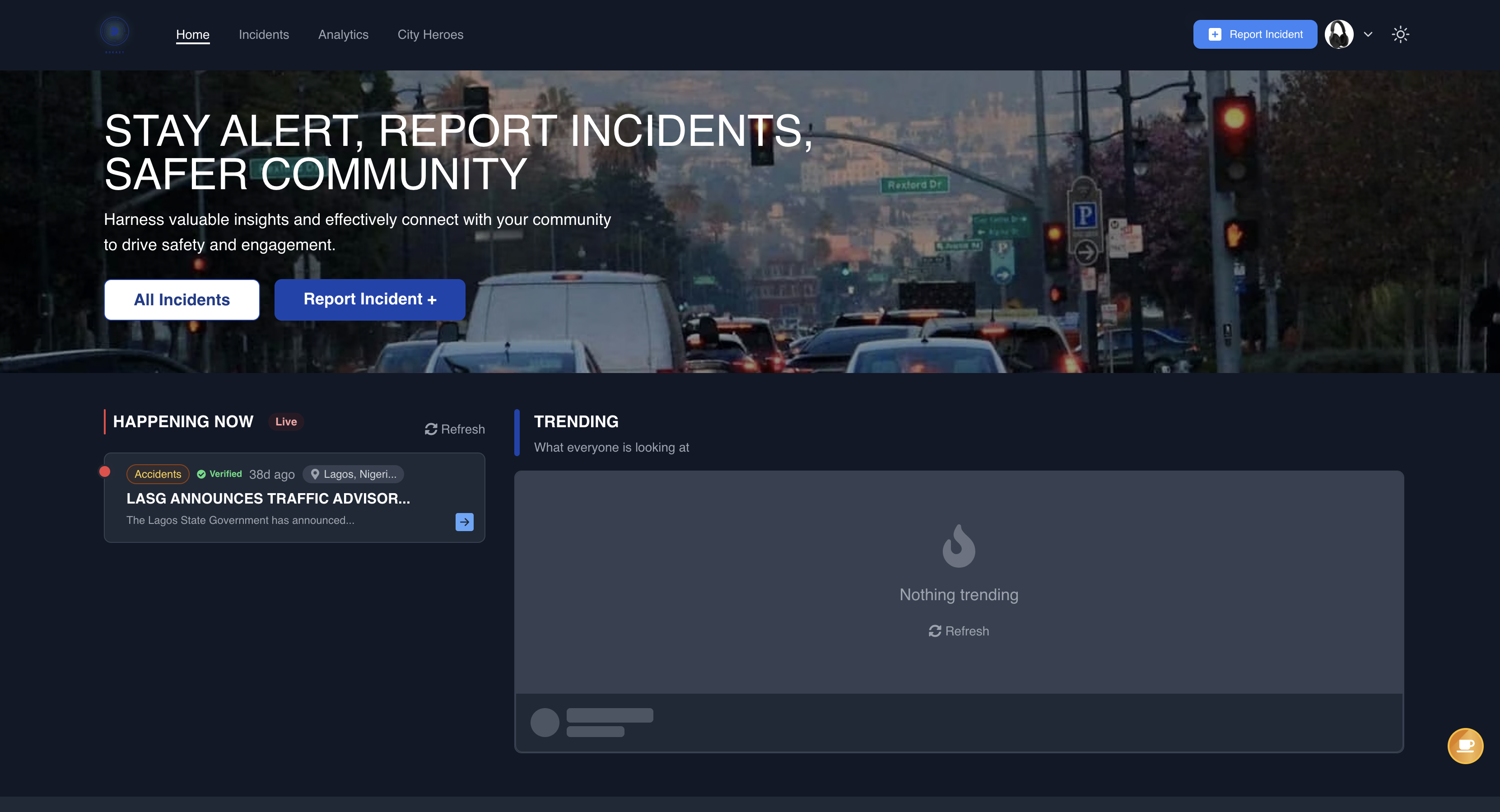 Docazy is a web-based community platform that allows users to report and track local incidents such as accidents, lost & found items, and public safety updates in real time.